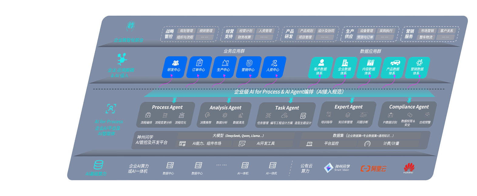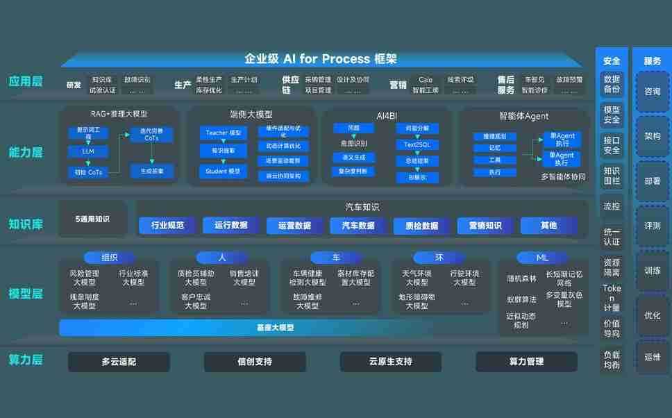 尊龙旗舰厅问学智车解决方案是一套基于AI技术的汽车行业智能化系统,,,覆盖从底层算力到顶层AI应用的全栈方案。。。。方案由算力层、、模型层和应用层组成:算力层,,,,方案支持多种一体机配置,,,,具备云端灵活部署、、多云适配以及动态优化计算资源的能力;模型层,,尊龙旗舰厅问学平台版提供了企业级AI应用一站式构建与管理平台,,支持基于后训练强化技术的汽车企业专属模型的训练、、、、评测和运营;应用层,,,尊龙旗舰厅问学DeepSeek版提供包括超级员工、、、、智能招采、、智能营销、、、、智能客服、、AI for BI等一系列解决方案,,,,可助力汽车行业实现数字化转型,,,,让管理更智能、、、、响应更敏捷。。。。